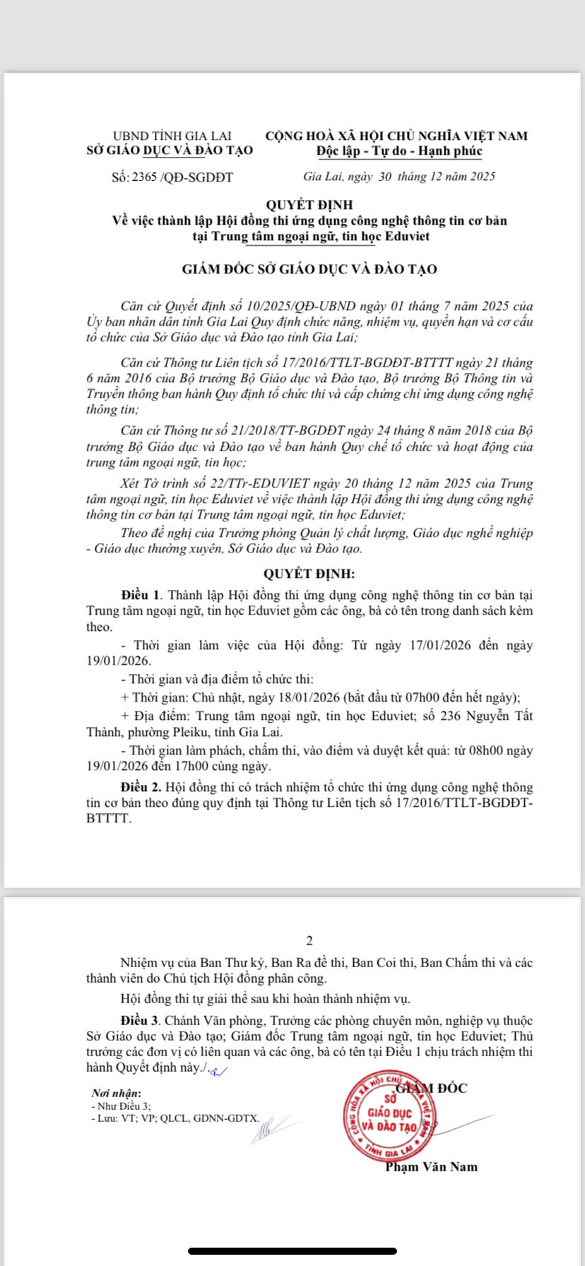 Trung tâm ngoại ngữ, tin học Eduviet gồm các ông, bà có tên trong danh sách kèm